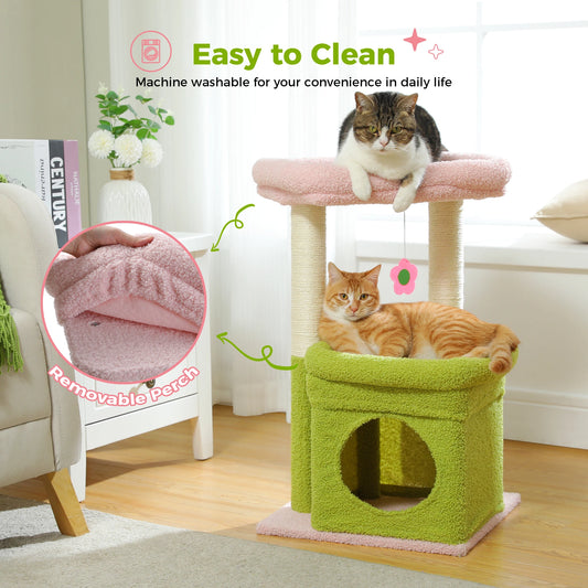 Flower Tree Multi-Level Cat Tower with Covered Scratching Posts